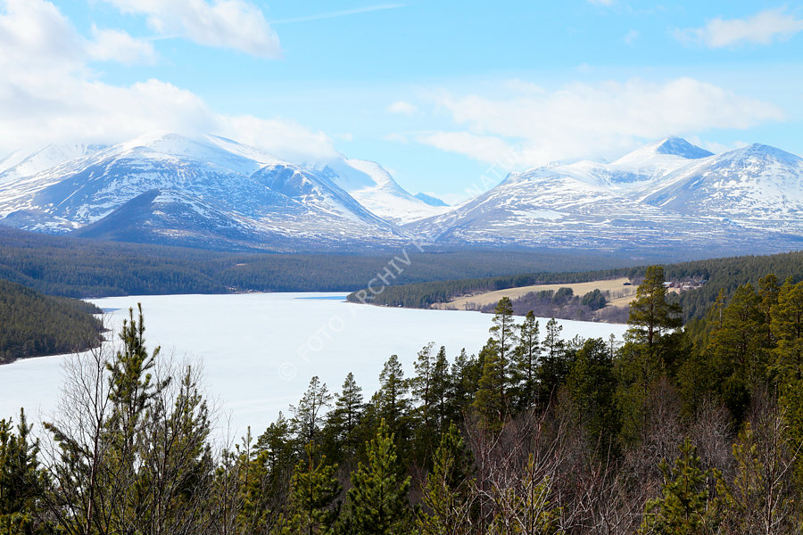 Bergmassiv, Bergsee, Borealer Nadelwald, Gebirge, Gewässer, Hedmark, Landschaft, Nationalpark, Norwegen, Ort, Rondane, Rondane Nationalpark, See, Wald,