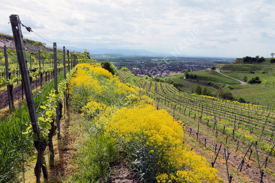 Blühendes Färberwaid in den Weinbergen bei Ihringen