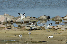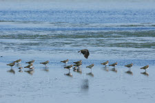 Gemischter Schwarm von Alpenstrandläufer und Sandregenpfeifer