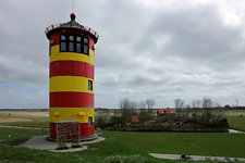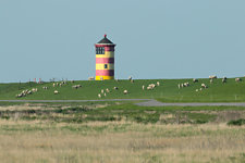 Leuchtturm auf dem Deich bei Pilsum