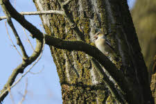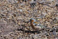 Birkenzeisig bei der Futtersuche auf dem Altschnee