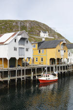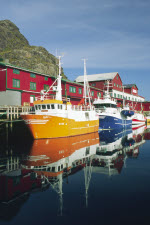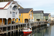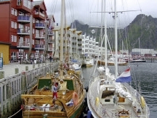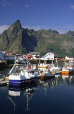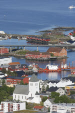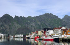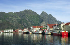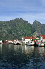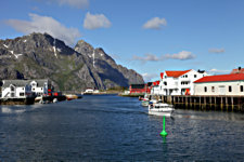 Fischereihafen Henningsvær / Sicht auf Kvanndalstinden und Vågakallen