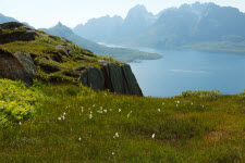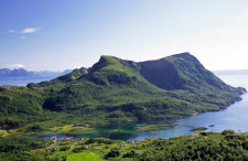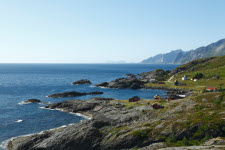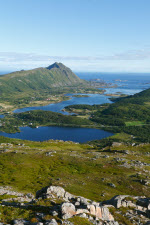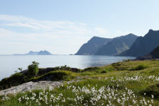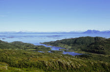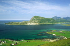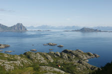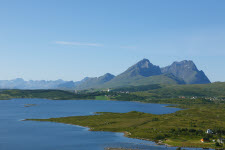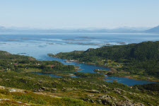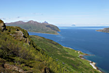 Blick vom Sjonfjellet auf das Nordmeer und Insel Handnesøya