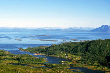 Aussicht vom Sildpollheia auf Austnesfjorden und Litlmolla