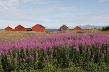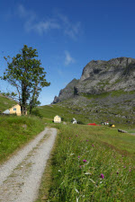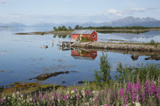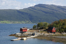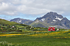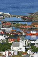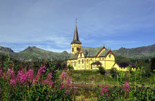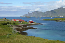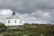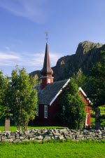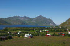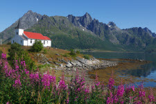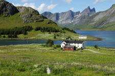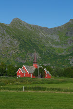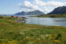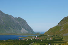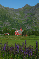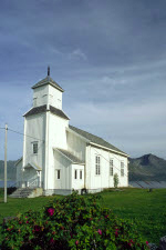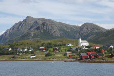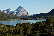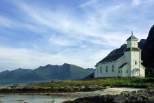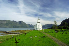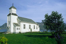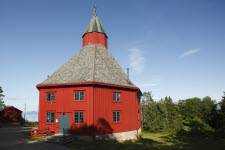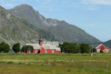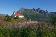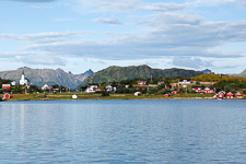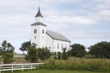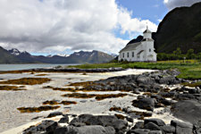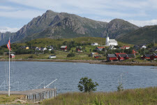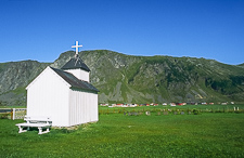 Kapelle Unnstad / Sicht auf Unnstad mit Ramnfloget und Rishamran im Hintergrund