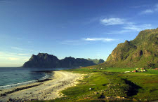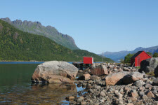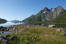 Strand Vikten / Vikten am Fuß von Bjørntinden und Møntinden