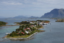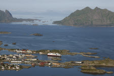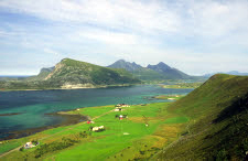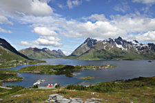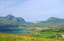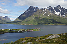 Sicht vom Digermulen auf Årsteinen und Ulvågsund im Hintergrund auf den Vestfjord