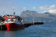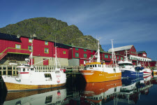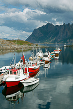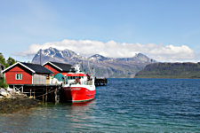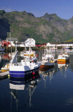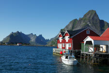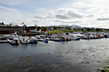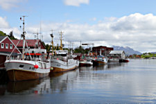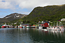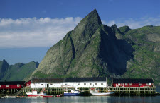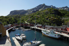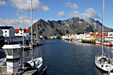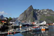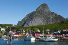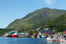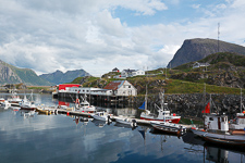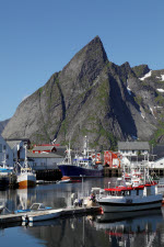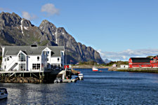 Fischereihafen Hamnøy mit Olstinden im Hintergrund