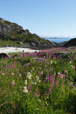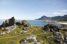 Kleivvika Aussichtspunkt auf das Nordmeer mit der Insel Lovlund