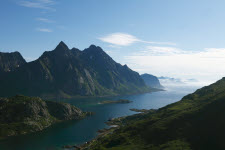 Sicht vom Digermulen auf Årsteinen und auf den Vestfjord