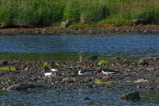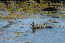 Ohrentaucher mit Küken auf dem Skjerpvatnet